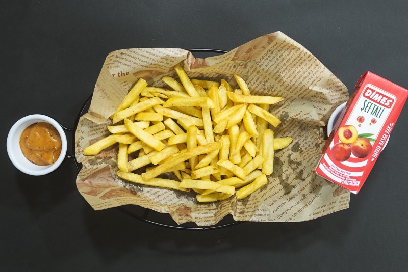 patates ve dilediğiniz meyve suyu ile birlikte